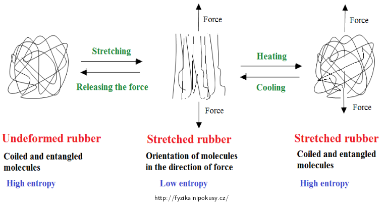 Zkrácení gumy při zahřívání (Goughův-Jouleův efekt)
